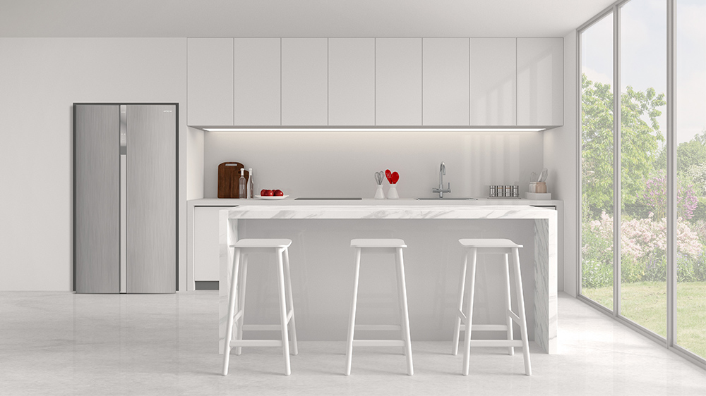 يطلق نظام تدوير الهواء قدرًا أقل من الهواء البارد بشكل مباشر على الأطعمة المخزّنة داخل الثلاجة بالكامل. يعمل نظام التبريد المانع لتكون الصقيع (No Frost) على توزيع الهواء البارد بشكل مثالي داخل الثلاجة. ينبعث الهواء البارد من جوانب الجدار الخلفي المصمم بشكل أنيق، ليحيط بالرفوف بشكل متساوٍ. يحافظ نظام التبريد بالهواء المحيط على تدفق الهواء بشكل لطيف وغير مباشر على الأطعمة.