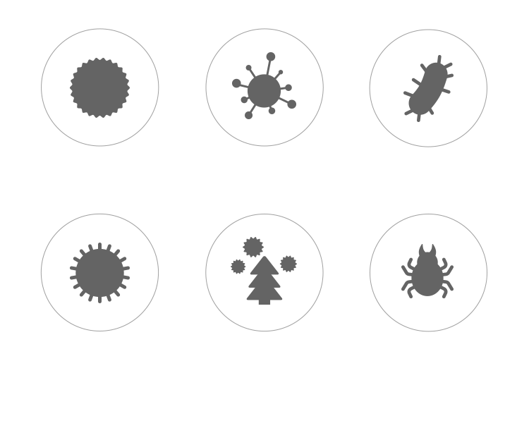 وفقًا لتقرير تقييم المخاطر الميكروبيولوجية لعام 2008 الصادر عن منظمة الصحة العالمية (WHO)، فإن حجم فيروس أنفلونزا الطيور والإنفلونزا البشرية وفيروس الفَيلَقِية وفَيروسُ الْتِهابِ الكَبِد الوبائي وفيروس السارس التاجي (كورونا) أكبر من 0.02 ميكرون.