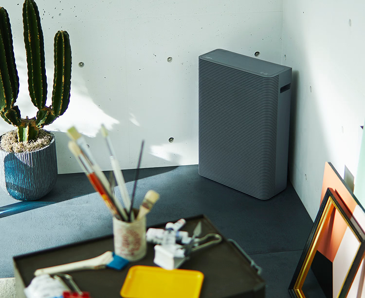 يوفر تصميم ممر الهواء الأصلي من هيتاشي ومحرك المروحة فائق الكفاءة معدل توصيل هواء عالٍ للغاية يصل إلى 650 م3/ساعة (معدل توصيل هواء نقي خالٍ من الغبار*1)، وبذلك يزيد من قوة تنقية الهواء. ويلتقط فلتر جسيمات الهواء عالي الكفاءة (HEPA) الخالي من مسببات الحساسية والمضاد للبكتريا 99.97 ٪*2 من الجسيمات الدقيقة التي يبلغ حجمها 0,03 ميكرون، و90 ٪ من الجسيمات متناهية الدقة التي يصل حجمها إلى 0.02 ميكرون*3. ويساعد ذلك في إنعاش الهواء الذي تتنفسه عن طريق تثبيط نشاط المواد المسببة للحساسية التي يتم التقاطها*4/ والبكتيريا المحمولة بالهواء*5/والعفن، كما يزيل الروائح الكريهة الموجودة في الهواء*6.