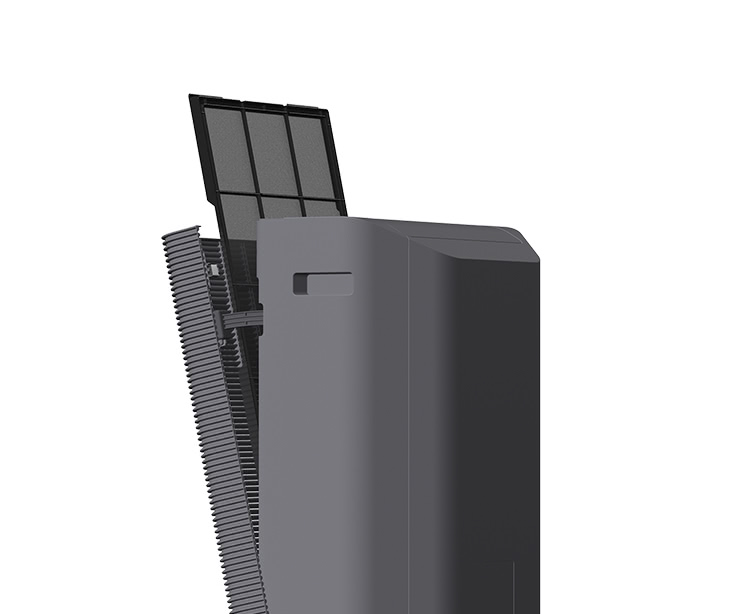 يتلاءم التصميم الخلفي تمامًا مع أركان الغرفة، حيث يجمع بين أفضل أداء تنقية الهواء مع أناقة في التصميم لإضفاء لمسة جمالية على الغرفة.